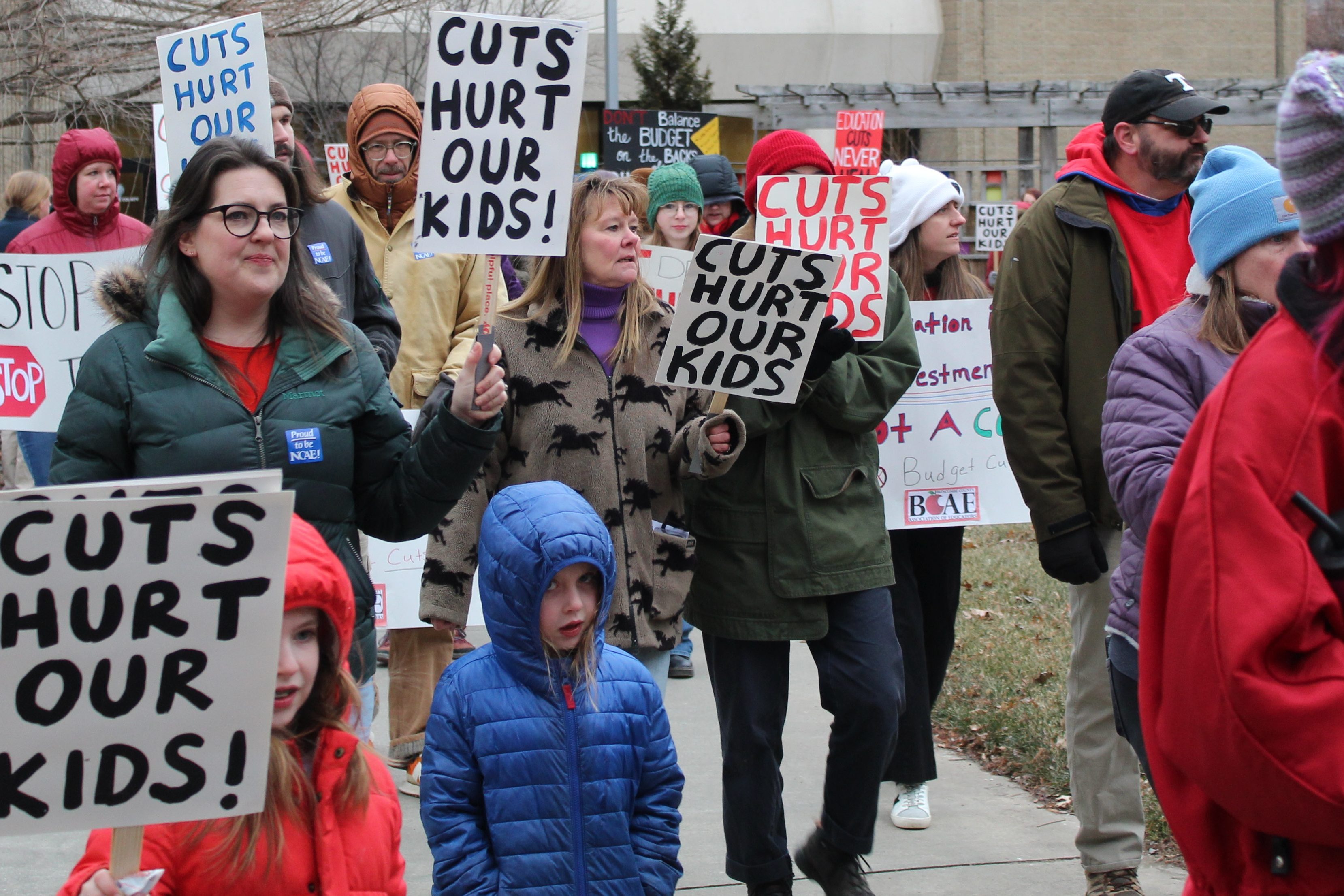 (Around 80 ACAE and BCAE members demonstrated in the freezing cold against these cuts, Jan 21st, 2025)