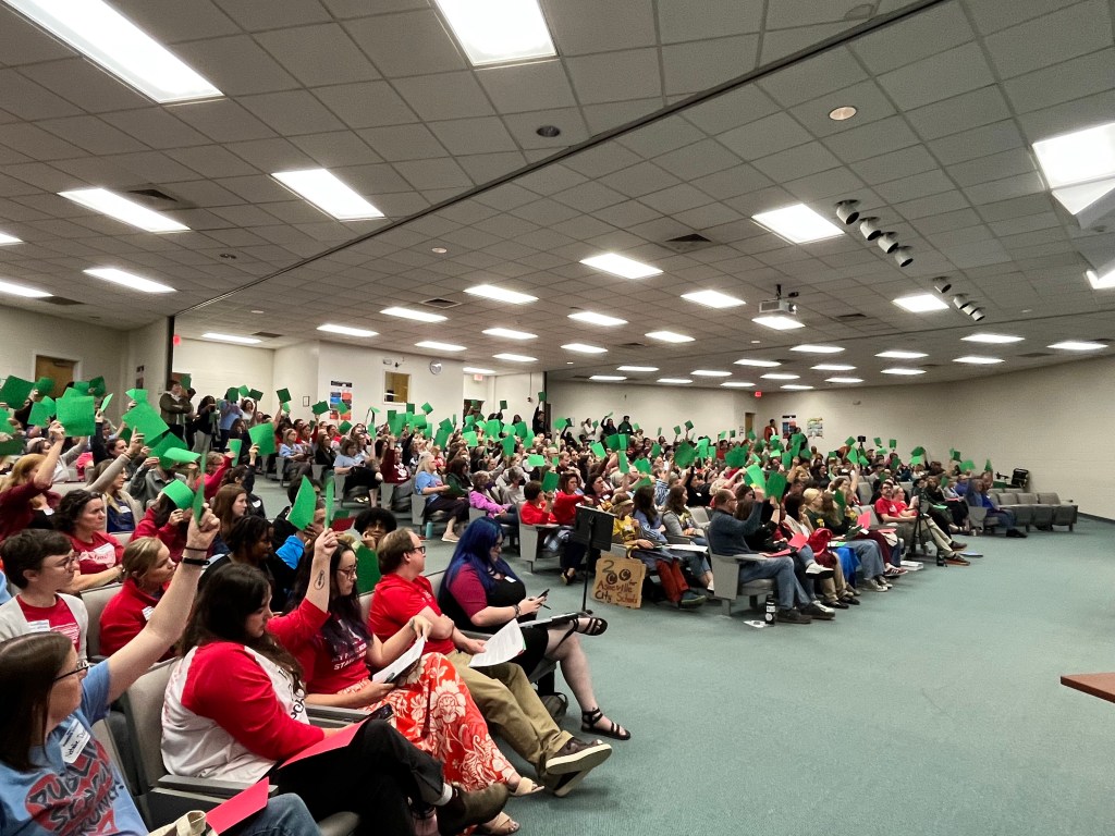 Seeing this as the campaign to save our public schools, ACAE and BCAE took powerful and historic action to win this campaign. We held a 400+ person town hall with county commissioners, over 60 union members held face to face conversations with Board of Education members and county commissioners, a majority of all staff in both districts signed a petition in support of a No Cuts budget, over 200 workers and allies marched through the streets on the day of the final budget vote. We knew that when it came to funding our future, we needed to do everything we could.